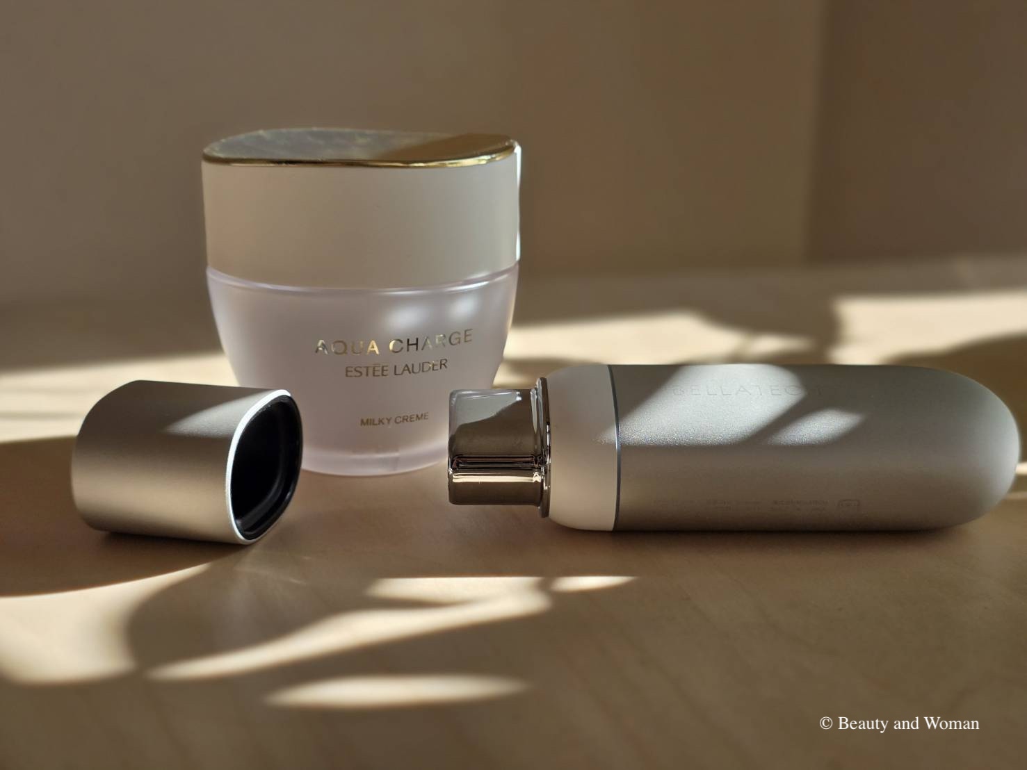 AIテックブランド「BELLATECH(ベラテック)」のスキャナー を使って、肌の水分量を計測しています。