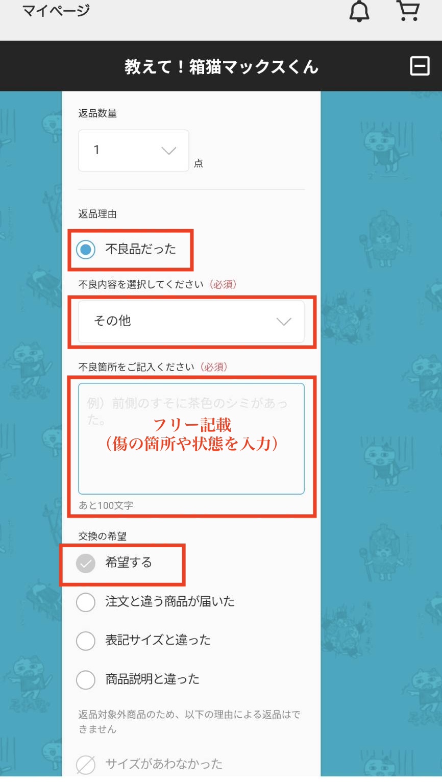 返品交換の申請をすることに。