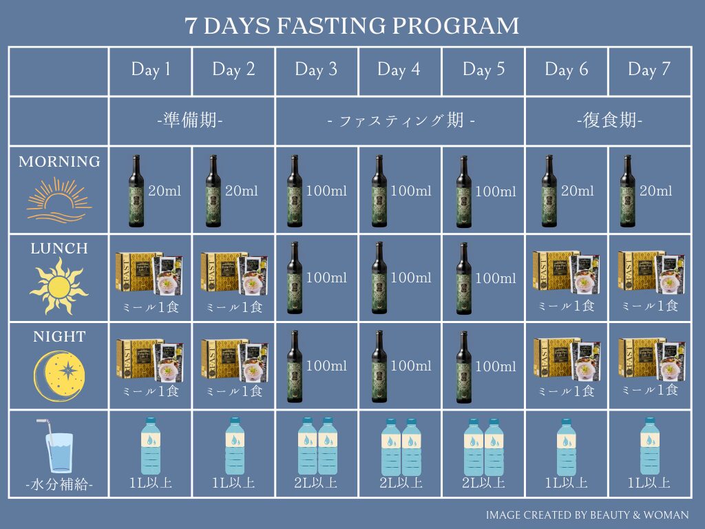 スケジュール例:1週間のファスティングプログラムはこんな感じ