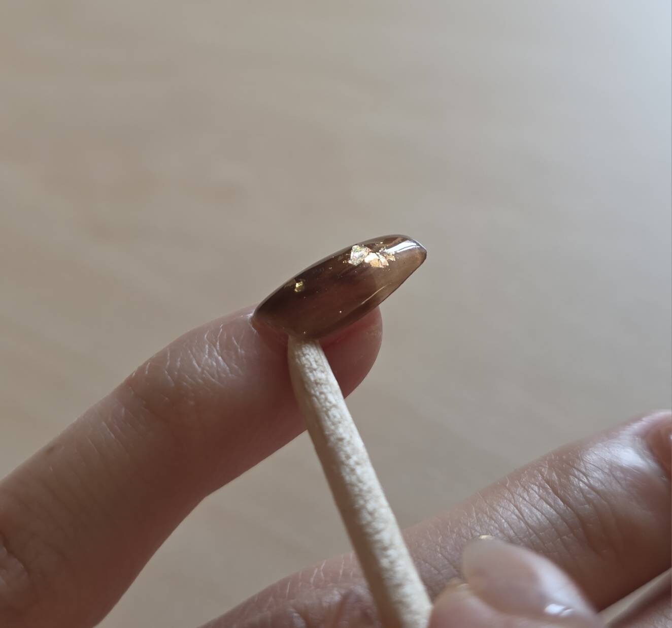 • 粘り気が強くなってきたら、ぎゅーっと圧をかけてネイルチップを付ける