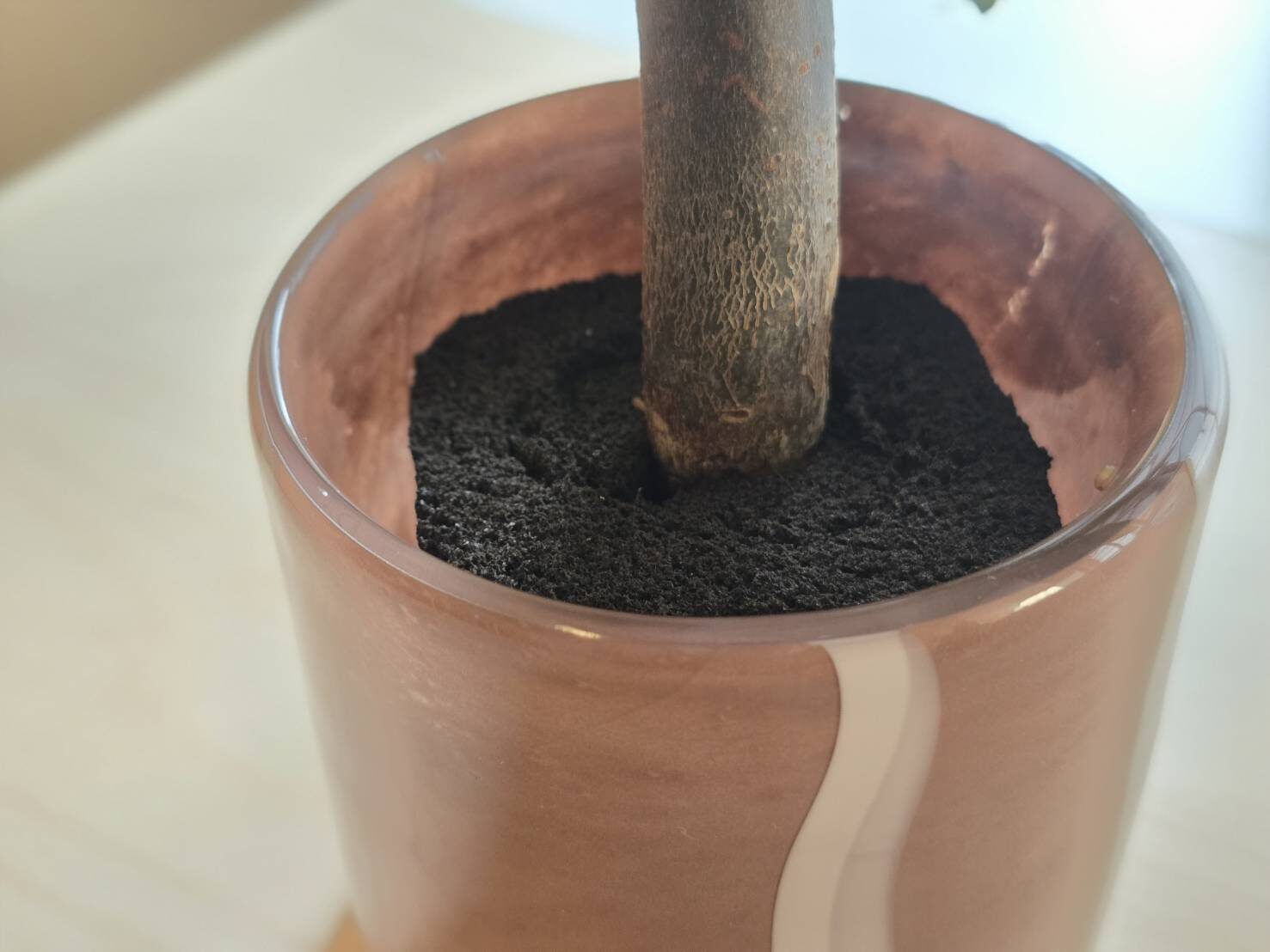 &Greenのガラス製の器「Stripe Glass Pot」を愛用しています。淡いブラウンに白い波打つラインが素敵。日が差すと、少し透けて見えるのがまたお洒落です○